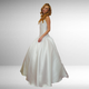 The Amara Gown features a sheer corset bodice adorned with delicate floral embellishments and a sleek satin skirt - a perfect harmony of romance and sophistication.